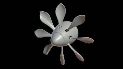 Procedural model of an aircraft propeller with smoothly bevelled edges.