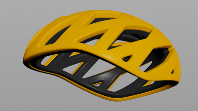 A procedural helmet based on rotated row and column curves of a sphere. Changing the amount of blur will change the shape of the holes.