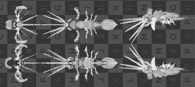 bbox * ratio combines the gradients on all mesh points with the overall aspect ratio. All projections fit proportionally onto the UV grid now, we only need to split them up and lay them out.