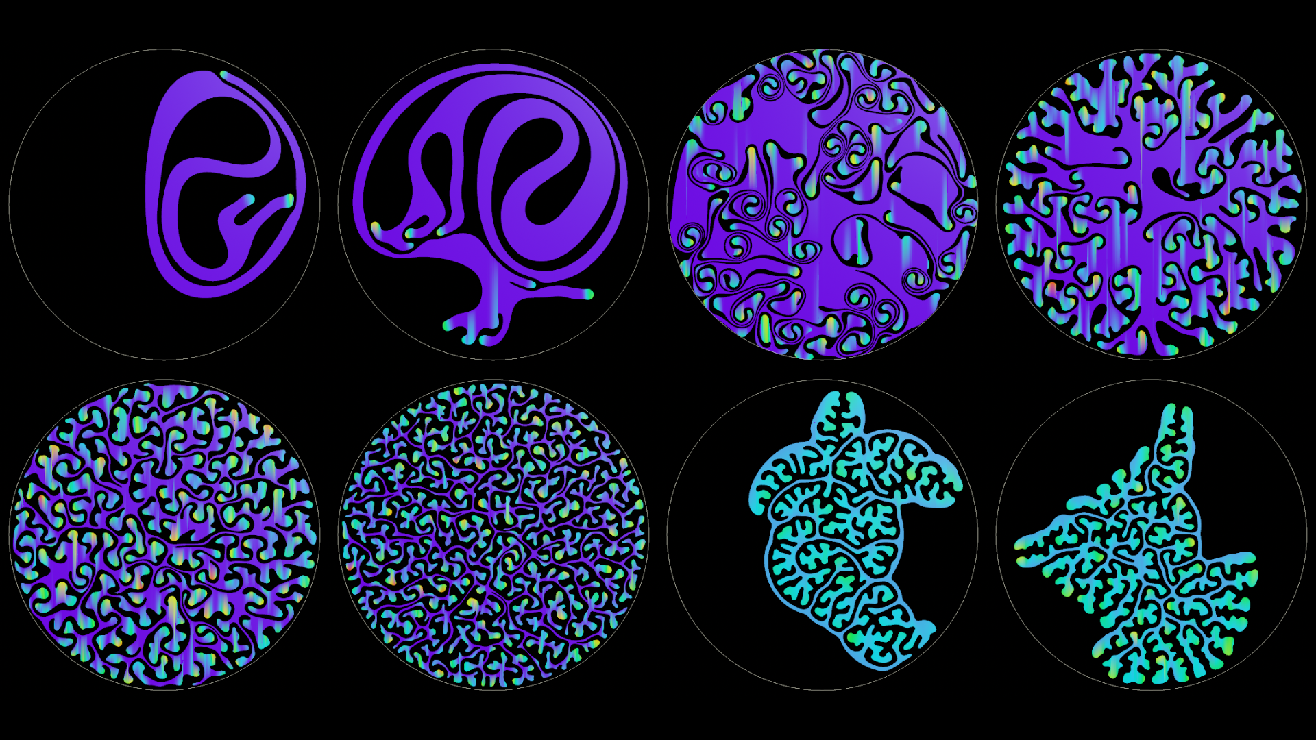 Growing two-dimensional curves into patterns using for loops and/or solvers.