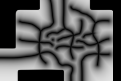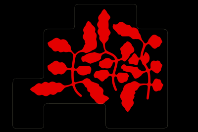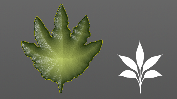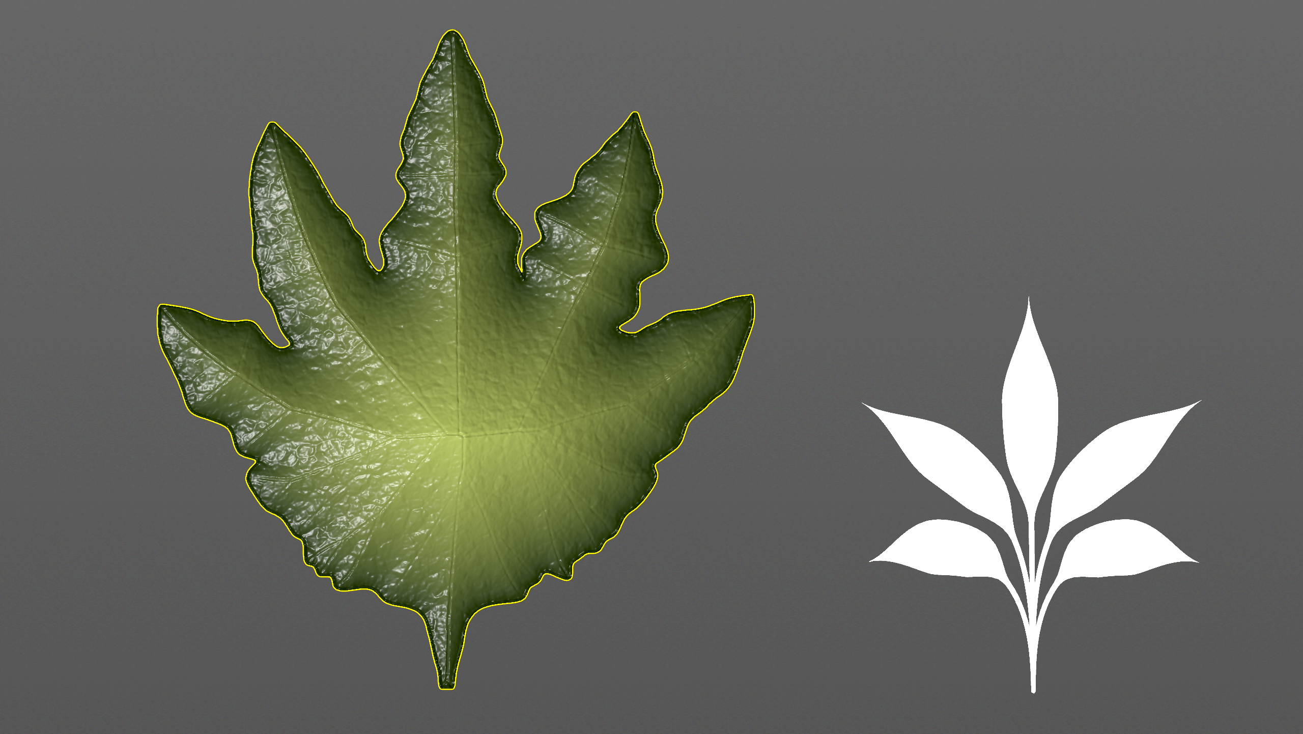 Next the distances towards these curves are remapped into leaf-like shapes building voronoi cells that are modified by a function curve and a sine wave.