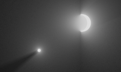 Monte Carlo integration and ray marching in a signed distance field (SDF) to render emissive circles.