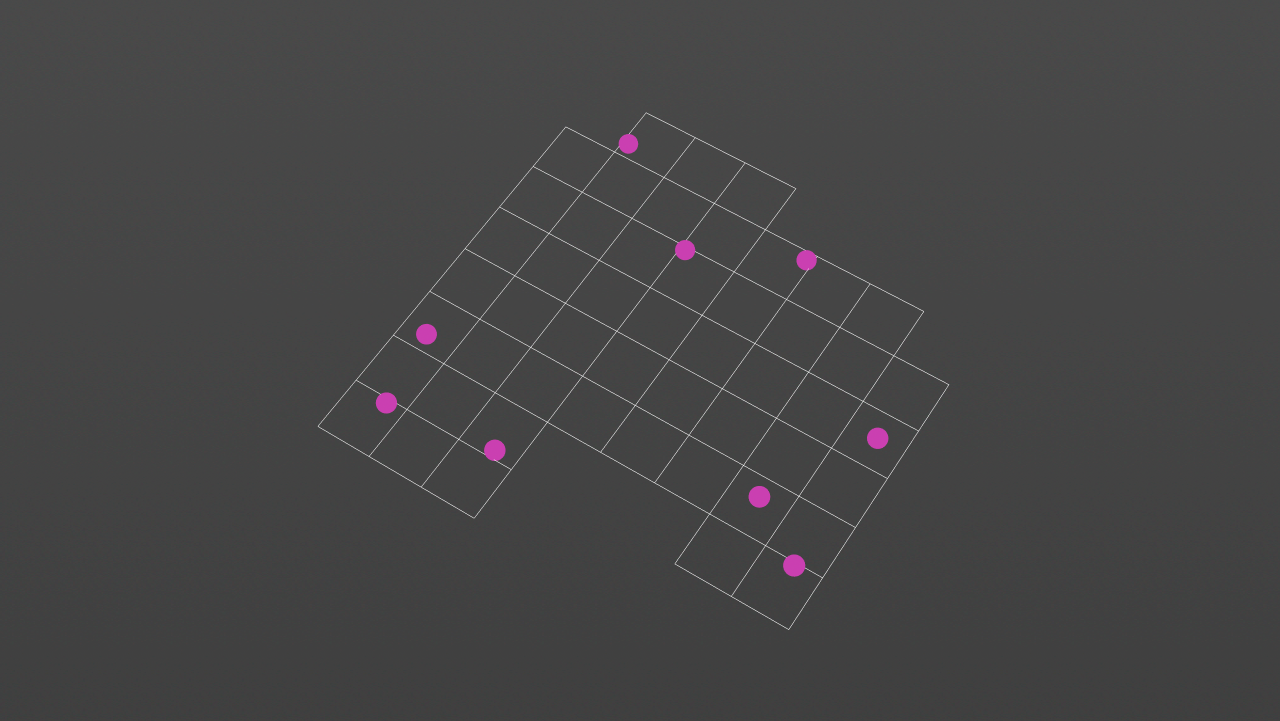 Random points positions get mapped pair-wise as corners to a grid.