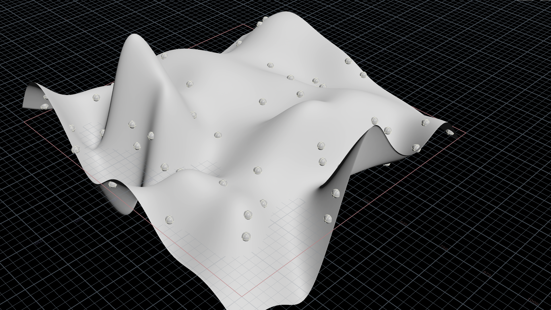 Python's NumPy/SciPy library offers multivariate interpolation. It's making sure the grid will always flow smoothly through our guide points even if they are positioned irregularily.