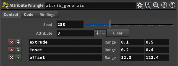 Quickly turn parameters into a dictionary and attributes using the attribute from parameters and attribute adjust dictionary node. The example file also demonstrates how to read the resulting detail attributes from a spare input and how to copy them into the geometry stream.