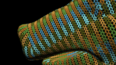 After resampling the subdivision curve is bend using a cosine wave for inter-looping with the next row.
