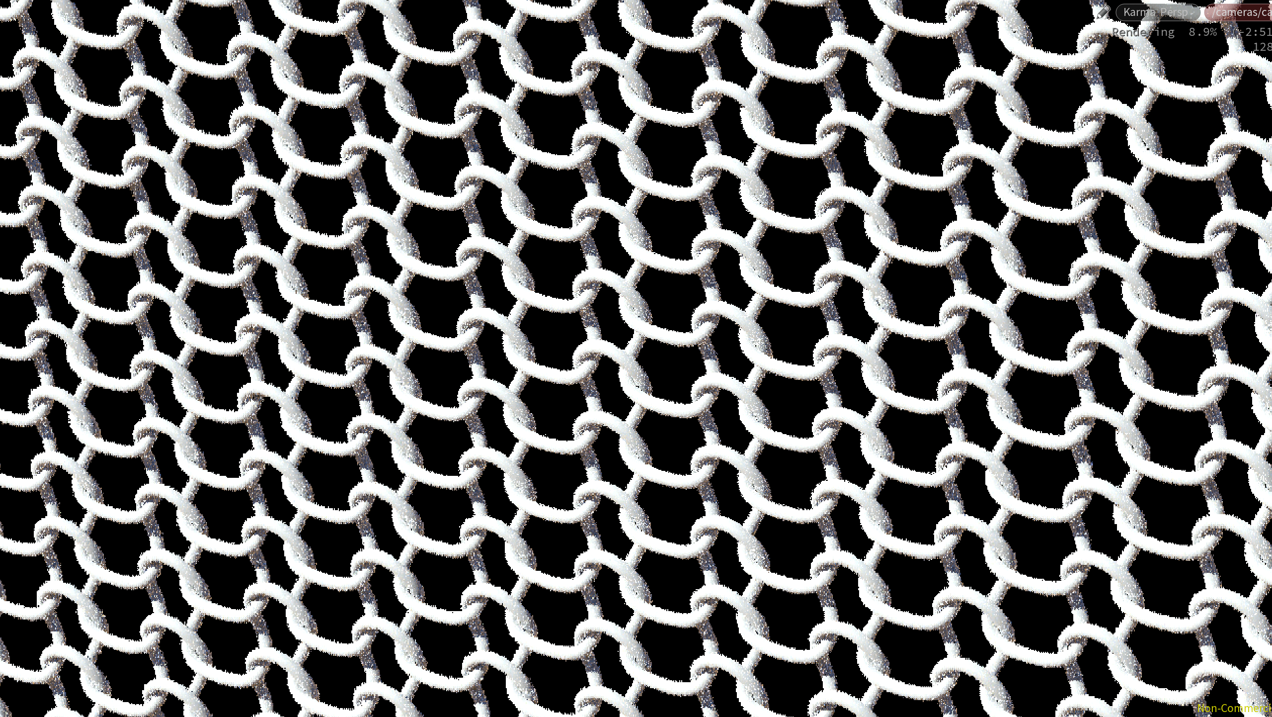 Populating a UV-unwrapped mesh surface with inter-looped yarn curves.