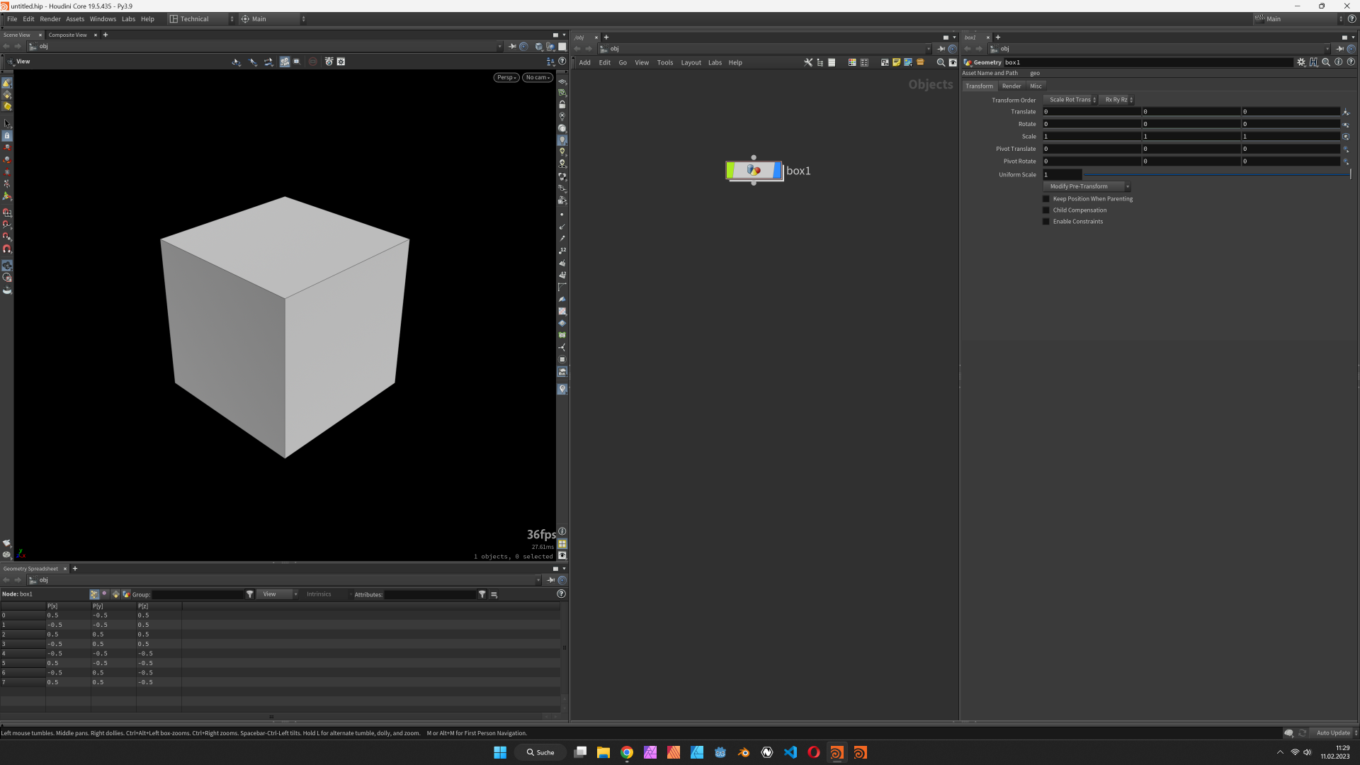 A Houdini desktop layout for procedural modeling. It's a modification of the Technical Desktop reduced to Scene View / Compositing, Geometry Spreadsheet, Network View, Parameters and minimized panels for Shelftools, Python Shell and Timeline.