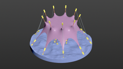 Building tent surfaces using poisson and eikonal solvers with the "attribute fill" node.